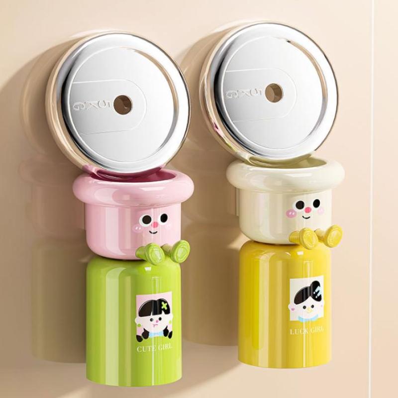 Kreslený držák na zubní kartáčky Bez vrtání Magnetický Obrácený kelímek na zubní kartáčky Nástěnný úložný prostor do koupelny Stojan na kelímky na vyplachování úst