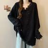 Spring Korean Style Age Reducing Versatile Hollow Out Long Sleeved Top, Loose and Slimming Lace Patchwork T-shirt for Women