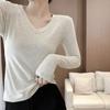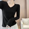 V-neck Right Shoulder T-shirt Slimming Hot Girl Long-sleeved Top Women Spring Autumn Bottoming Women