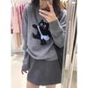 A Cat Sweater for Women in A Loose and Laid-back Korean Style for Autumn and Winter, Paired with A Grey Top