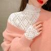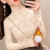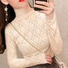 Toto je dámské tričko s matným krajkovým podkladem pro podzim a zimu, s nadýchanou vnitřní vrstvou a síťovaným šifonovým topem.. Je to stylový bílý tlustý top