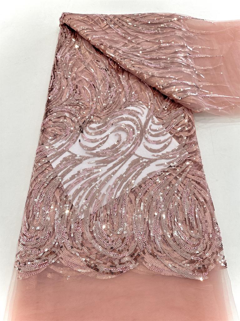 African French Beaded Lace Fabric 2025 High Quality Lace Embroidered Nigerian 3d Sequins Tulle Lace 5 Yards For Sew Party Dress