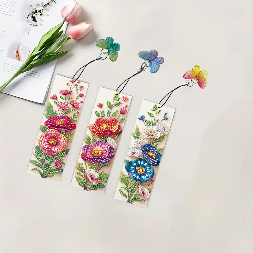 3Pcs Special Shape Flowers Diamond Bookmark Art Projects DIY Bookmarks Diamond Painting Kits Diamond Art Bookmark with Pendant