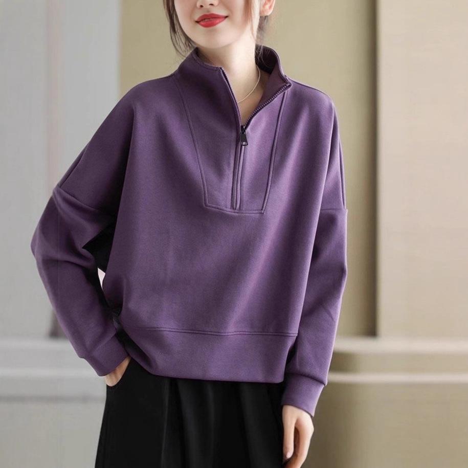 Dámská mikina se stojáčkem na poloviční zip, volného střihu, s dlouhým rukávem, pulovr, ležérní top, nadměrná velikost
