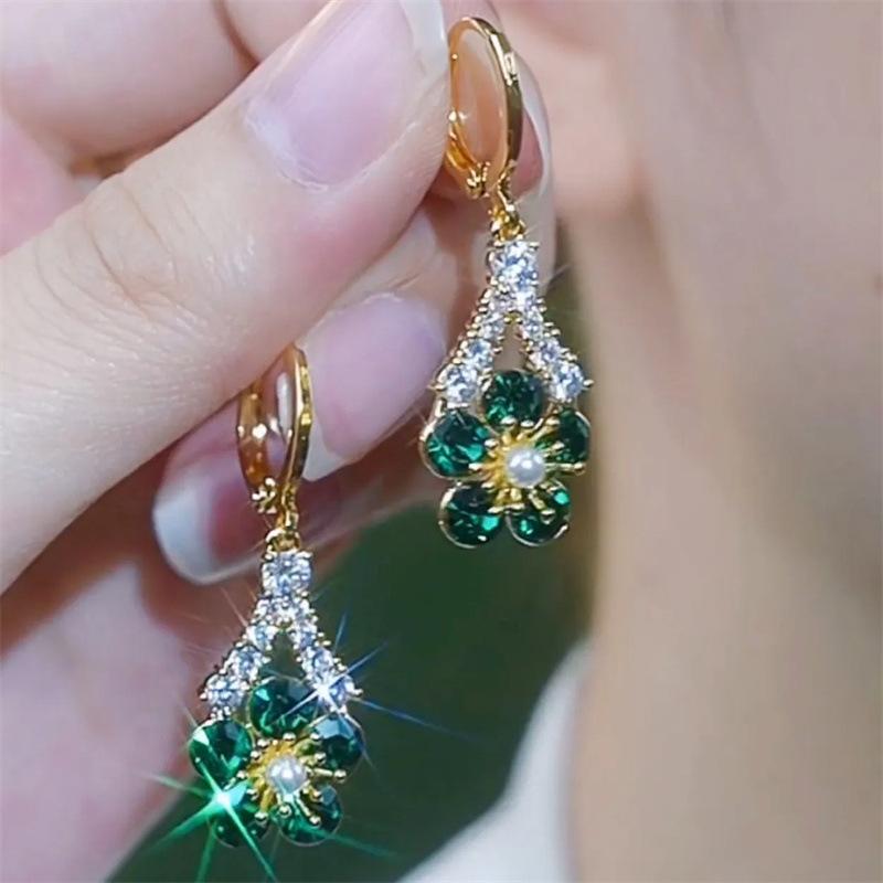 New Summer Luxury Green Crystal Flower Earrings for Women, Fashion Personalized… More