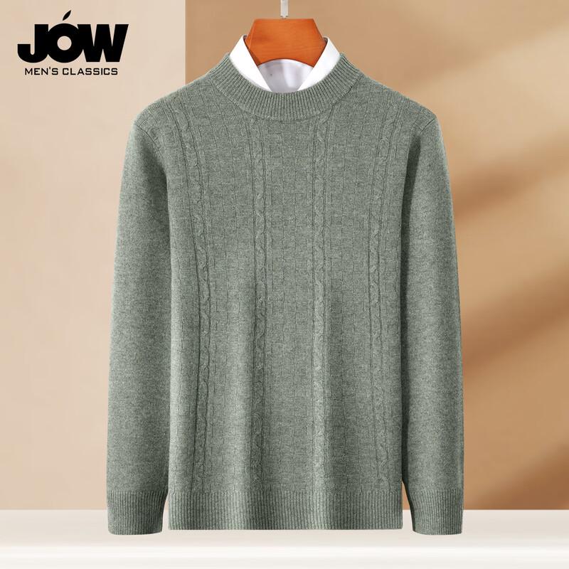 JOW Men's Jacquard Merino Wool Blend Pullover Sweater