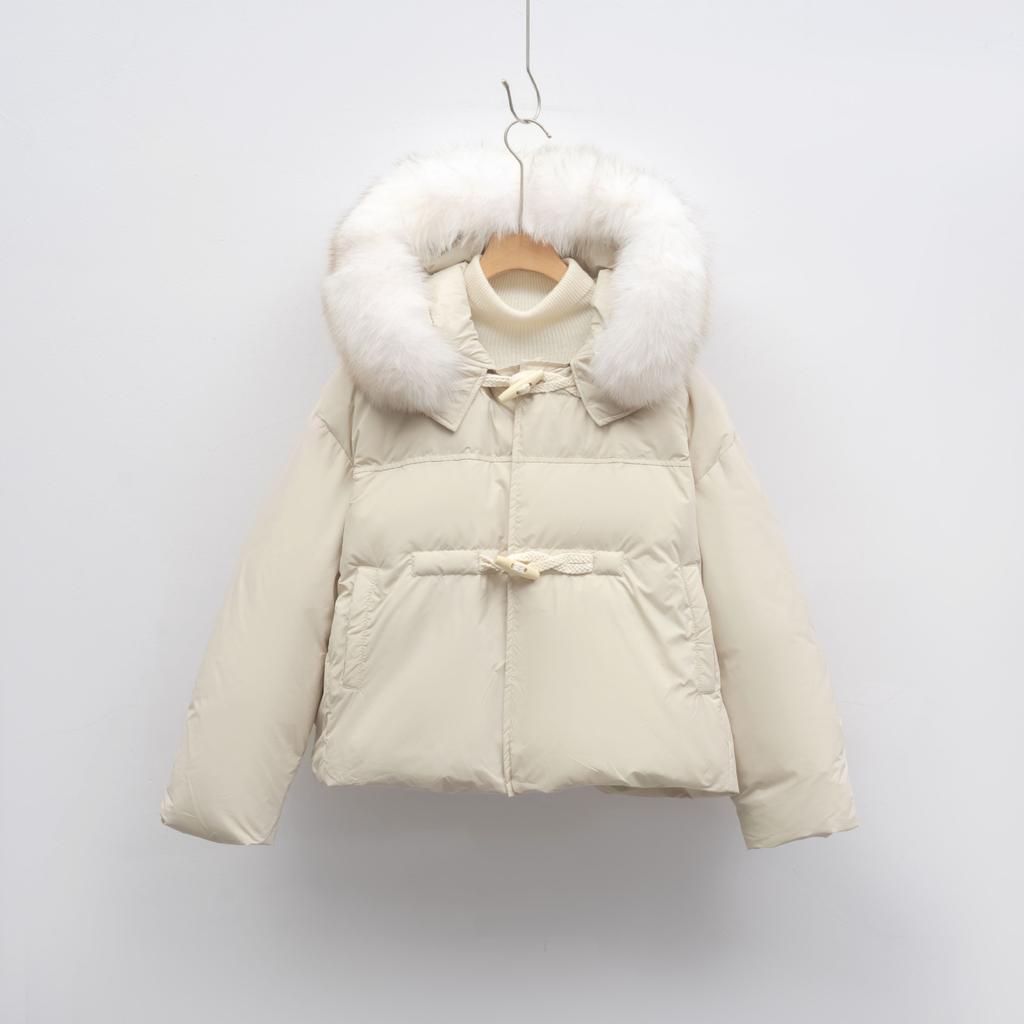 Down jacket hooded thickened fox hair down jacket women's big fur collar winter fashion cold and warm