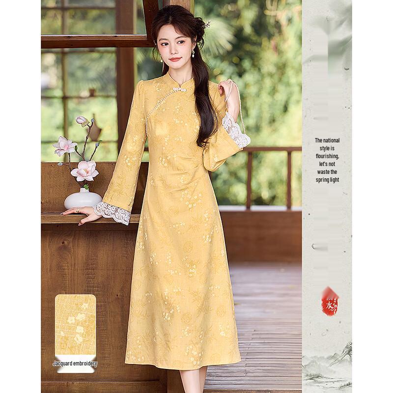 Elegant New Chinese Style Long Sleeve Midi Dress