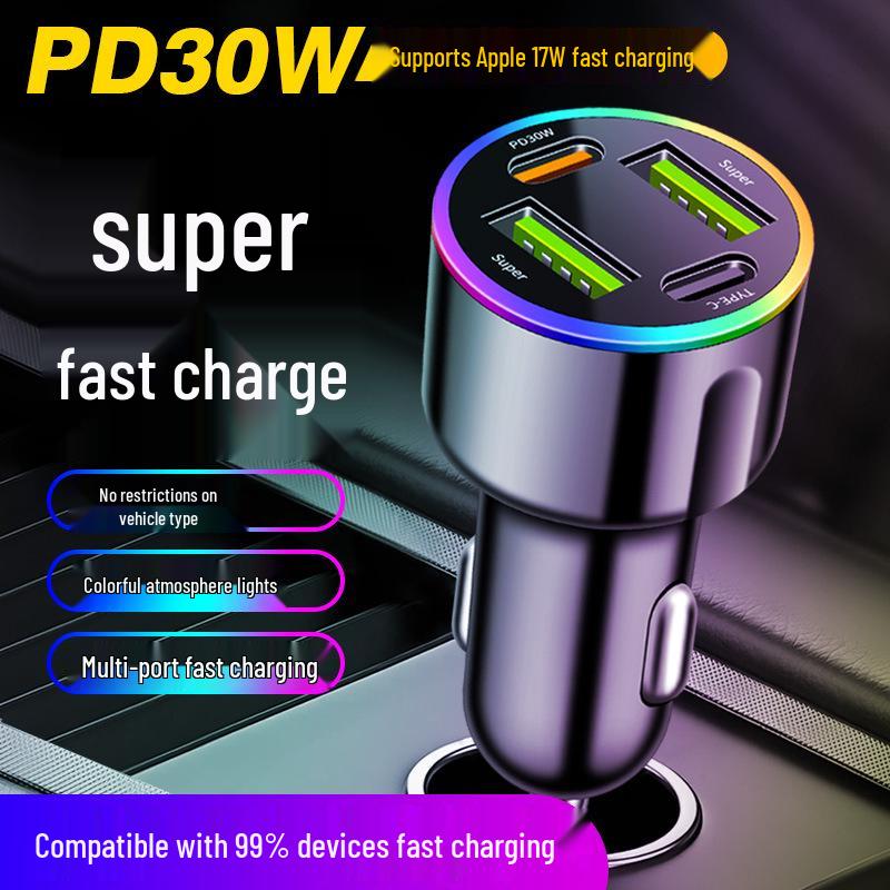60W Super rychlá 7barevná atmosférická nabíječka do auta s PD30W