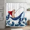 Zábavný kočičí sprchový závěs Zábavné zvíře ve vaně s rybami Látkový sprchový závěs Hilar set pro výzdobu koupelny s domácím mazlíčkem s háčky