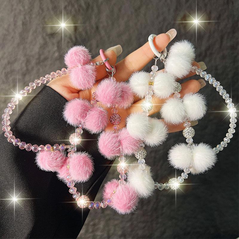 New Furry Crystal Rhinestone Phone Chain for Women, Wrist Hanging Decoration, Autumn and Winter Plush Phone Chain, Short Style Wholesale