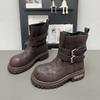 Thick-soled heightening locomotive Martin boots women's autumn new leather retro mid-tube western knight boots