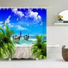 Pláž Moře Palmy Sprchové závěsy Scenérie Vodotěsné 3d Koupelnové závěsy s háčky Domácí dekorace Omyvatelná koupelnová zástěna