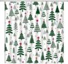 Christmas Tree Shower Curtain Blue Cute Xmas Tree Stars Cartoon Winter Holiday Merry Christmas New Year Bathroom Decor