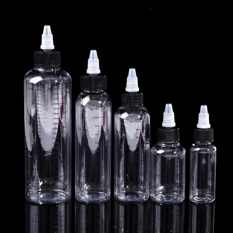 30ml-250ml Plastové PET Lahvičky s Kapátkem na Tekutiny Objemové Nádoby na Pigmentové Inkousty