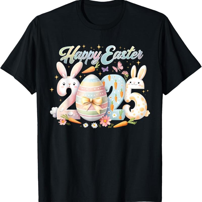 Happy Easter 2025 Bunny Rabbit Face Day Women Girls T Shirt