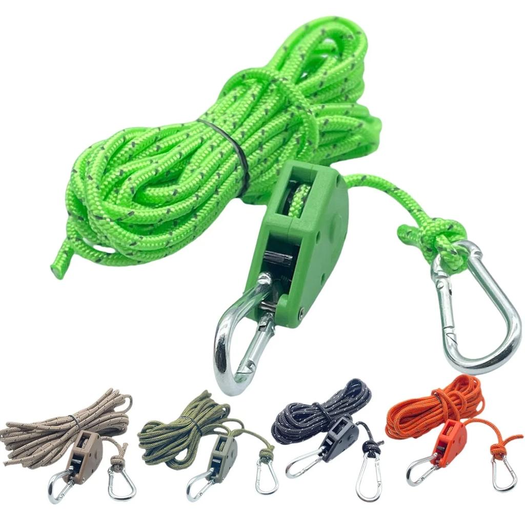 6pcs Reflective Camping Tent Rope Tie Down Fastener Fixed Buckle Pulley Tensioner Ratchet Hangers Awning Wind Rope Outdoor