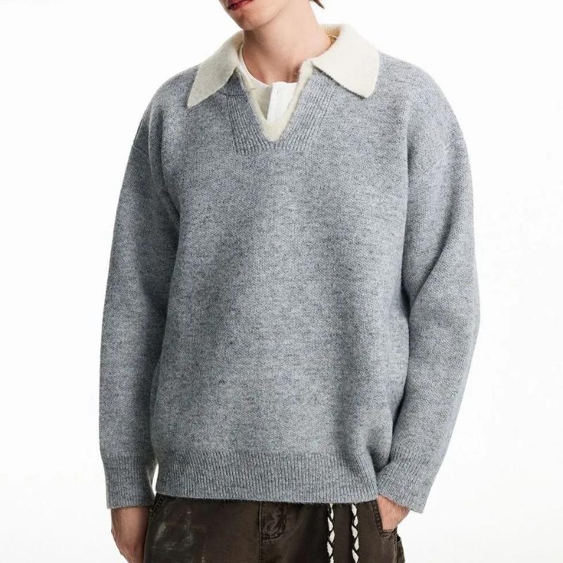 Men's Clothing Polo-Neck Casual Knitted Pullovers