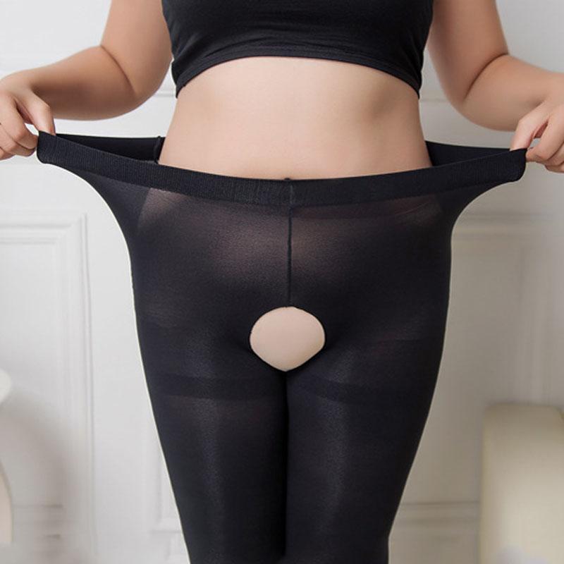 Sexy Women Plus Size Open Crotch Pantyhose 10 Large Elastic Nylon Crotchless Black Tights High Waist Female Stockings Hosiery