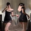 Hollow Out Waist Sexy Lace Bellyband Glossy Bodycon Dress Thin Temptation Strap One-Piece Oil Silk Stockings Lingerie