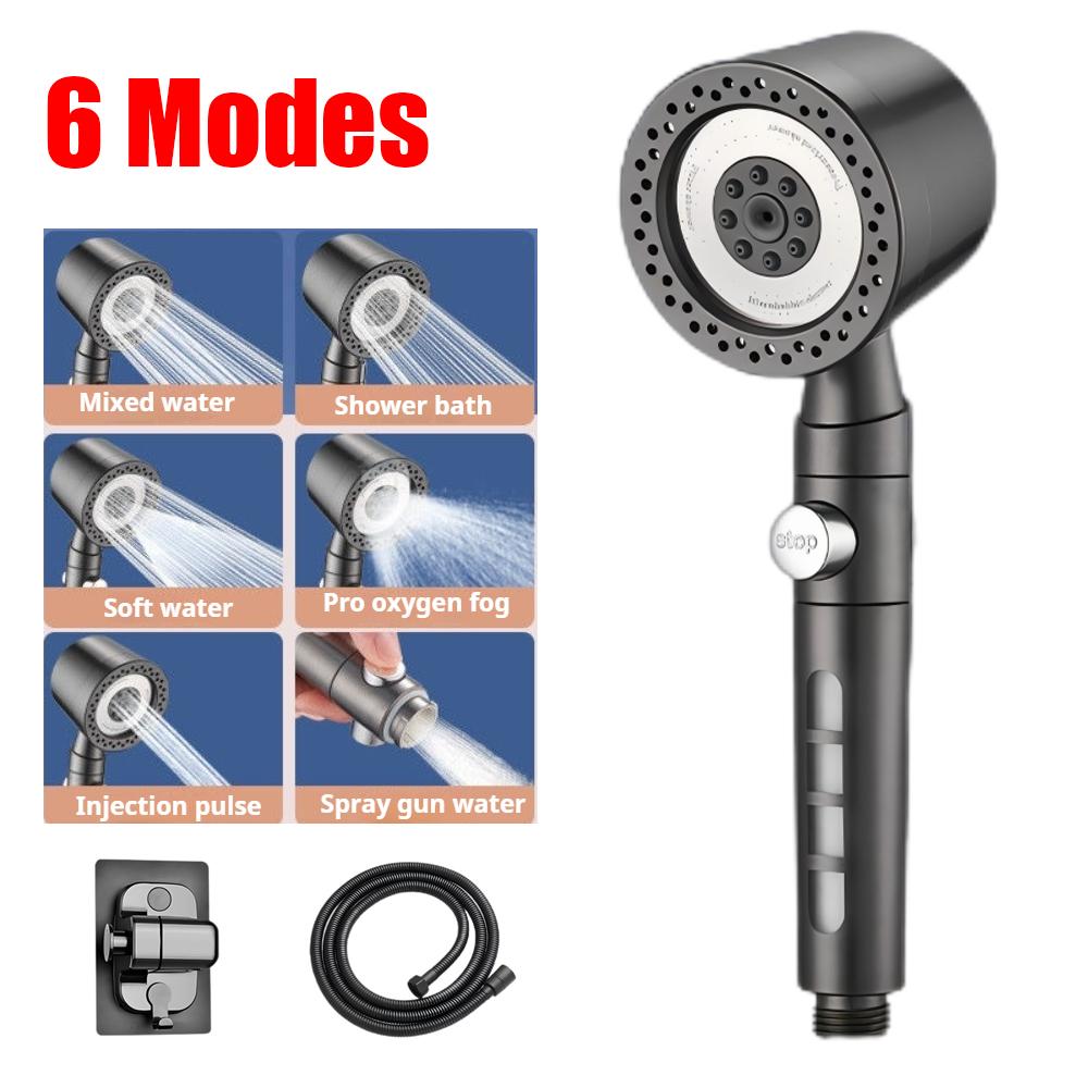 6 Spray Filter Shower Head ABS Portable High Pressure Large Strong Flow Shower Heads with Stop Button Universal Bathroom Nozzle