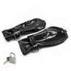 Sexy Fetish Costumes of Black Soft Faux Leather Fist Gloves with Locks Restraint and Chain for Men Women Role Play Exotic Appeal