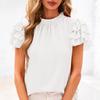Women's Fashionable Ruffled Round Neck Solid Color Bubble Short Sleeved Top
