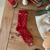 Warm Fleece Socks, Bright Red Christmas Joy Socks, Bow New Year Socks, Bow Red Socks