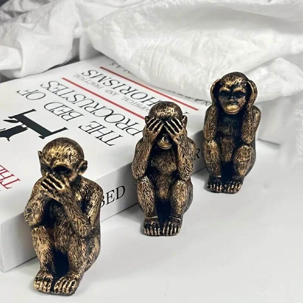 Handmade Craft Whimsical No Evil Monkeys Figurine Resin Monkey Ornament Living Room Bedroom