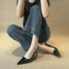 Fashion French Classic Grey Women Pointed Toe High Heel Sandals Open Back Slim Strap Party Commuter Versatile Shoes