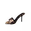 Móda 2025 Léto Dámské Moderní Pantofle se Čtvercovou Špičkou Módní Leopardí Šaty Sandály Dámské s Tenkými Podpatky Pantofle Plus Size Zapatos