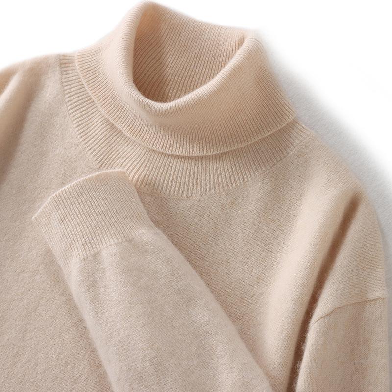 New high lapel cashmere sweater men's solid color knitted primer sweater loose inner sweater