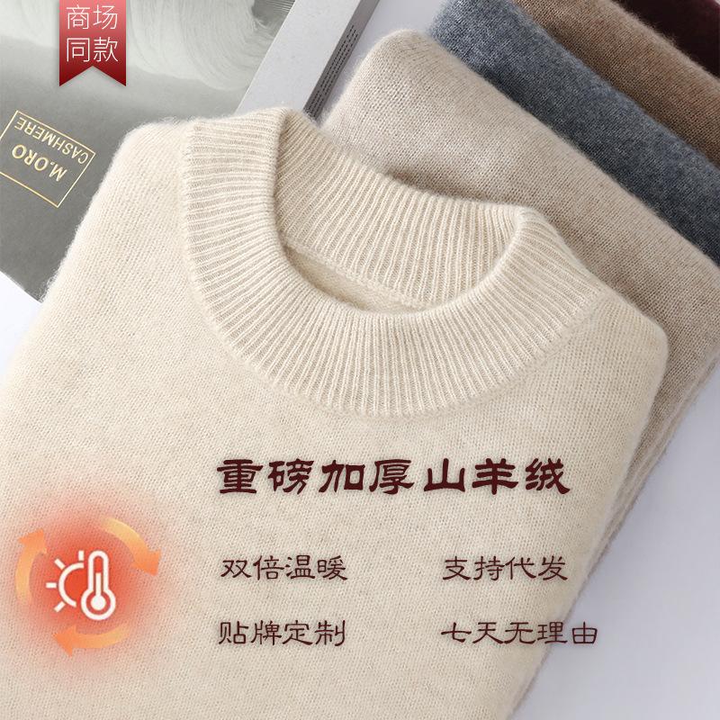 New cashmere sweater men's semi-turtleneck pullover thickened sweater loose and versatile solid color cashmere knitting