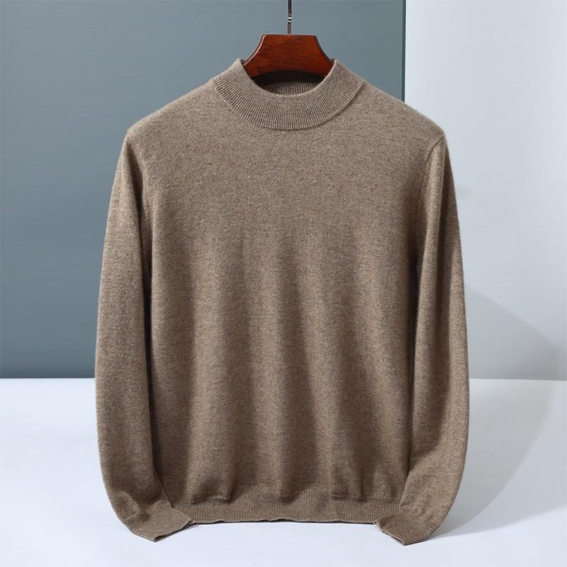 Solid color simple cashmere sweater men's semi-turtleneck pullover new knitted cashmere