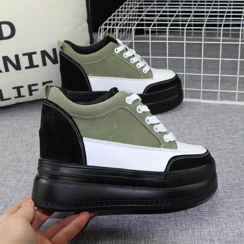 Fashion 2025 Spring New Mixed Color Shoes 10CM Women's Shoes with Thick Bottom Height Increase All-match Slim Black Casual Sports Shoes