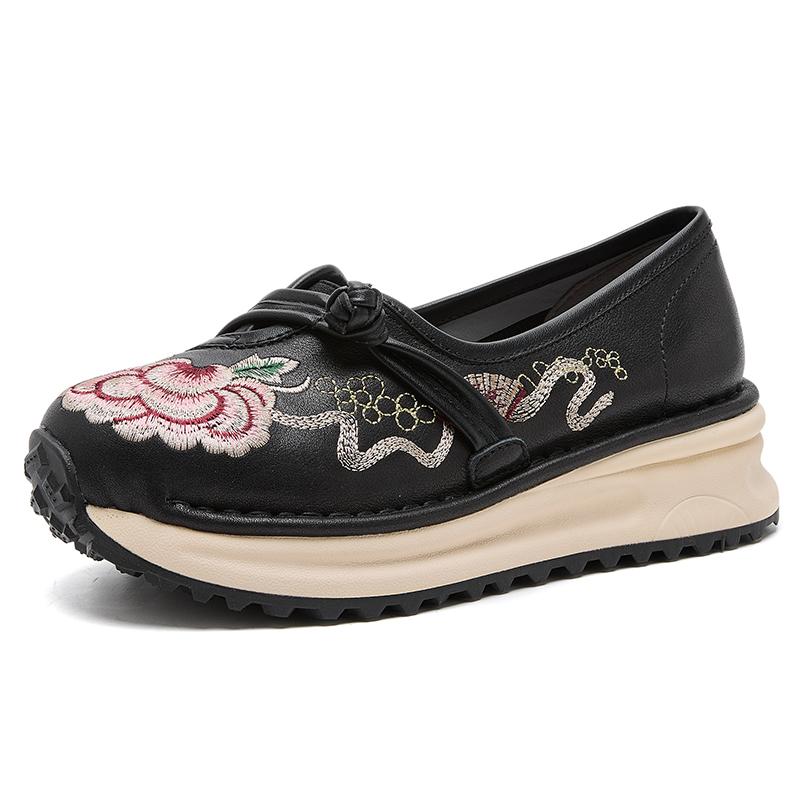 Fashion GKTINOO Platform Sneakers Women Genuine Leather Shoe Embroidered Round Toe Lace-Up Thick Sole Flats Ladies Shoes Handmade