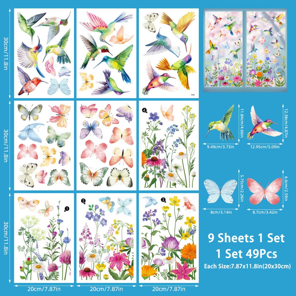 Jarní samolepky na okna Statické samolepky Ptáci na větvích s květinami a motýly pro skleněné dveře Domácí dekorace