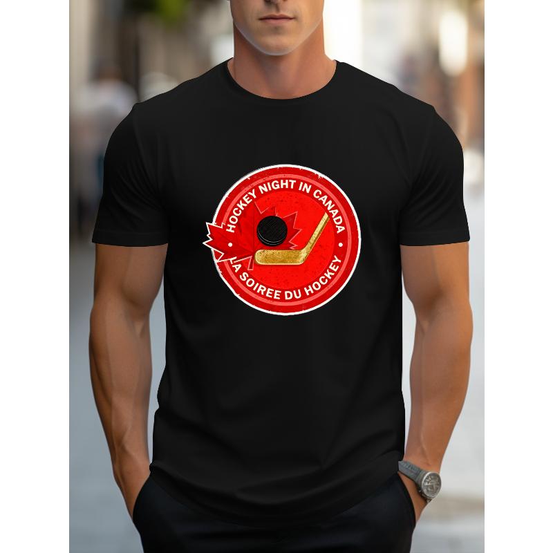 Hockey Print Short Sleeve T-Shirt Moisture Wicking Comfortable Gym Workout