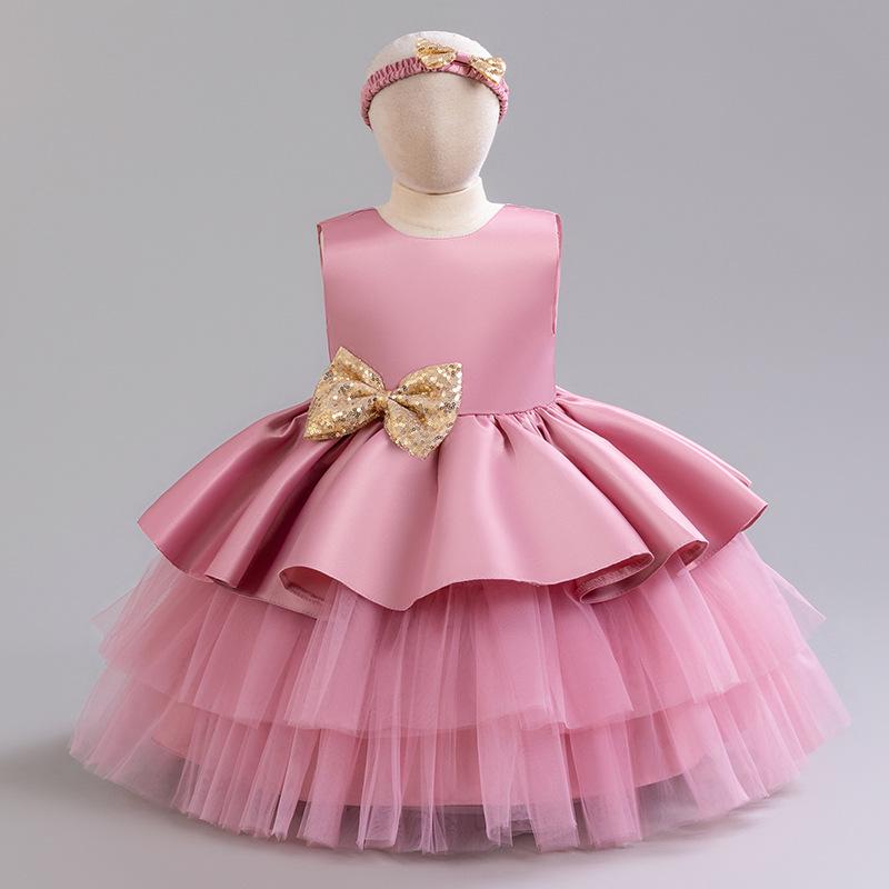 This elegant party dress is designed for young girls who want to feel like a princess at their special events. Made from high-quality satin, the dress boasts a puffy, tiered tulle skirt that adds a touch of whimsy and sophistication. Perfect for birthdays, evening gatherings, or any festive occasion, this dress ensures your child stands out with its luxurious design and enchanting silhouette. Comfortable and stylish, it's a must-have addition to any little girl's wardrobe.