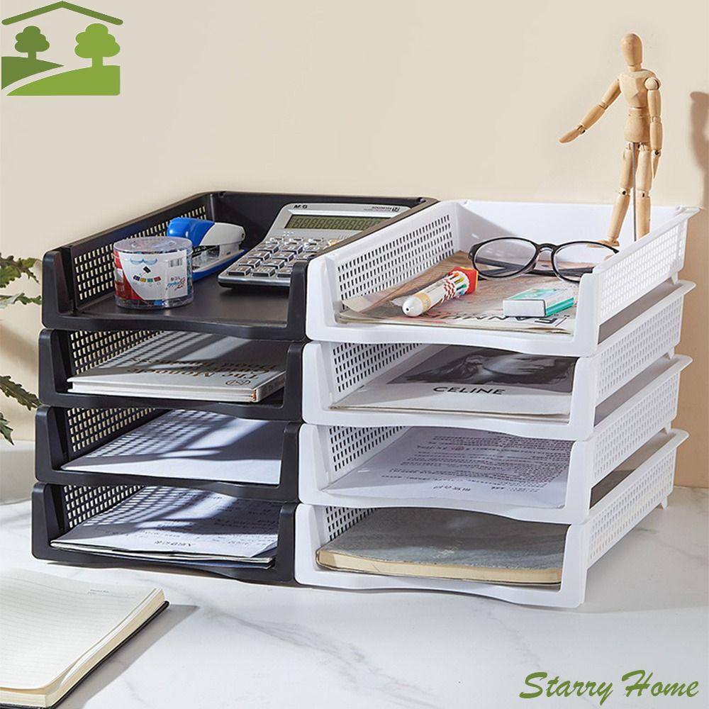 Fashion Desktop Organizer Stackable File Rack File Organizer Papers Rack A4 File Storage Tray Laminated INS Style Documents