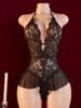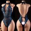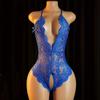 Blue Open Crotch Women Body Suit Crotchless Adult Sexy Erotic Lingerie Pajamas Lace Temptation Sex Bodysuit V-neck Hot Underwear