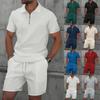 Men's Sports Leisure Half Zipper Short Sleeves Shirt And Pull Rope Shorts Set
