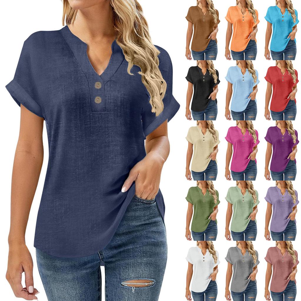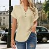 Women's Fashion Casual Button-Front Split-Front Short-Sleeved Plain T-Shirt Top