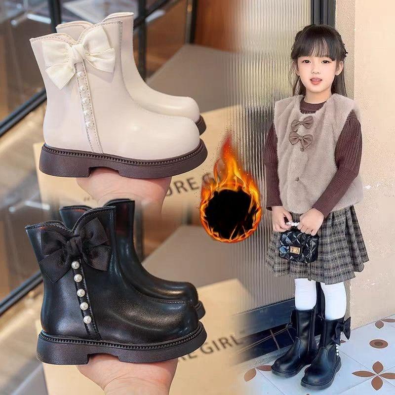 Girls' Fashion Boots for Autumn and Winter, Children's Fleece Princess Leather Boots