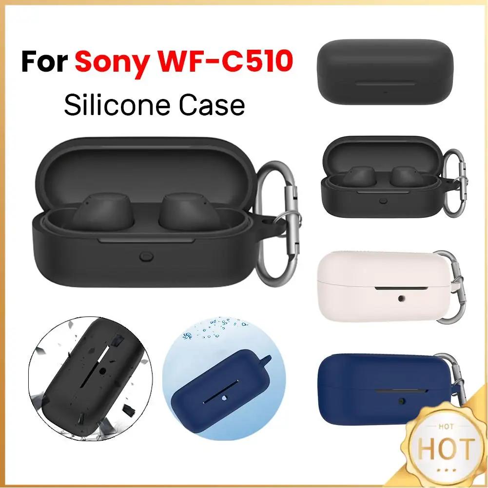 Silicone Case Earphone Case Cover with Carabiner Wireless Earbuds Charging Box Protective Shell for Sony WF-C510 Charging Case