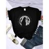 Black and white cat looking at moon pattern print T-shirt fashion women's top summer short-sleeve women's clothing