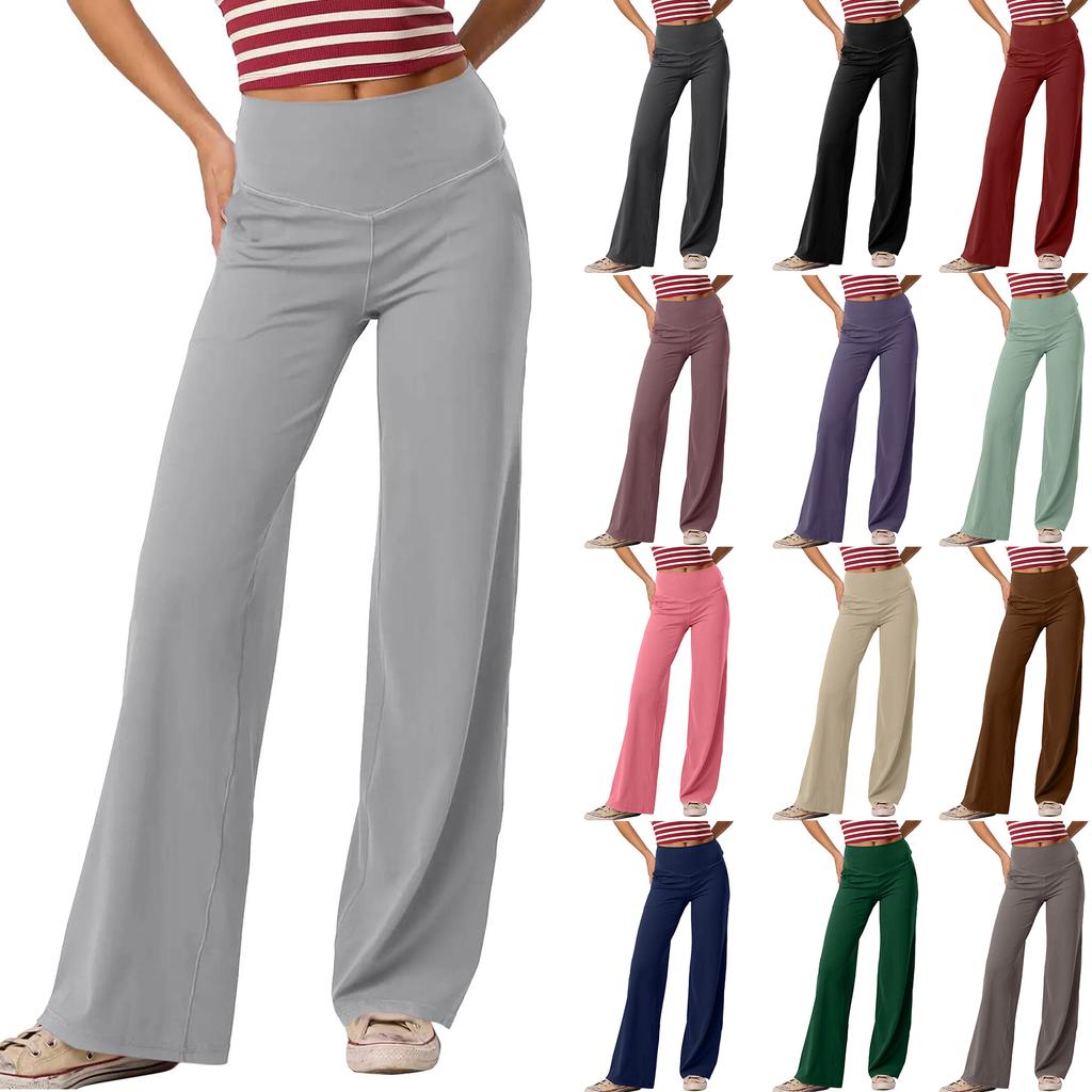 Dámské vysokopasé zvonové volné rovné jógové kalhoty pro venkovní sporty