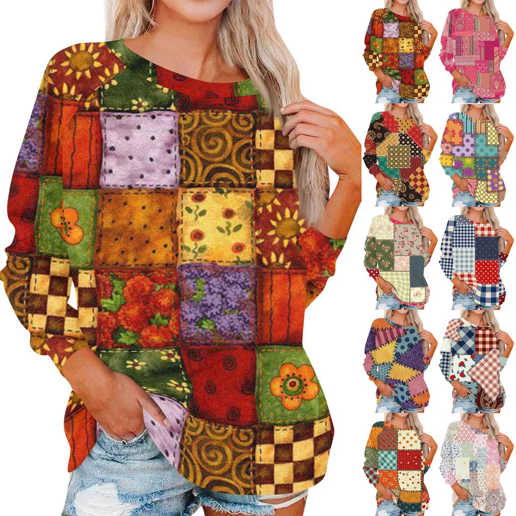 Dámský módní top s kulatým výstřihem, dlouhým rukávem a potiskem, ležérní pulovr
