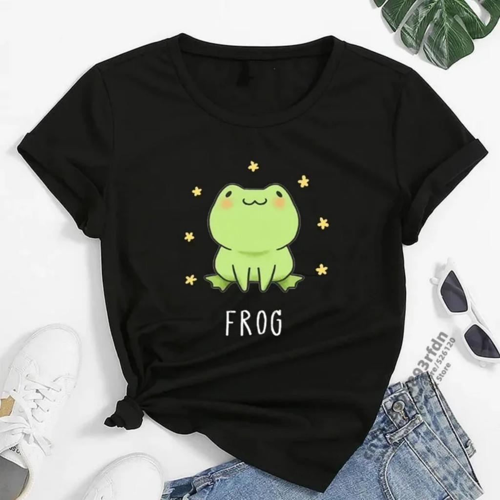 Kreslené tričko s potiskem žáby Dámské Letní s krátkým rukávem Volné Anime tričko Dámské Harajuku O-výstřih Streetwear Kawaii Anime tričko