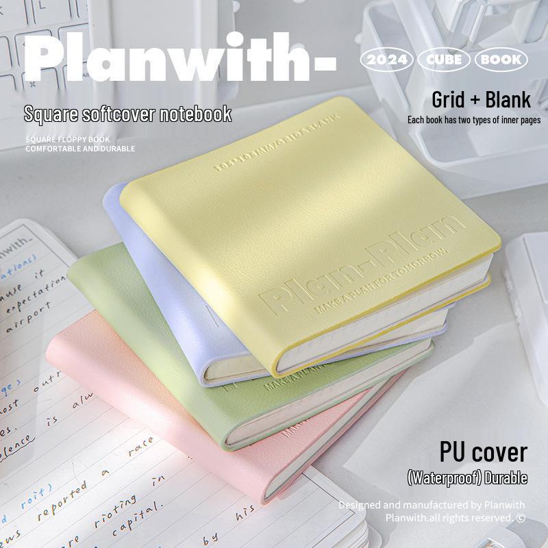 CUBE Planwith Portable Softcover Notebook - Waterproof PU Leather, Stitch-Bound, Pocket Size, 100g Paper